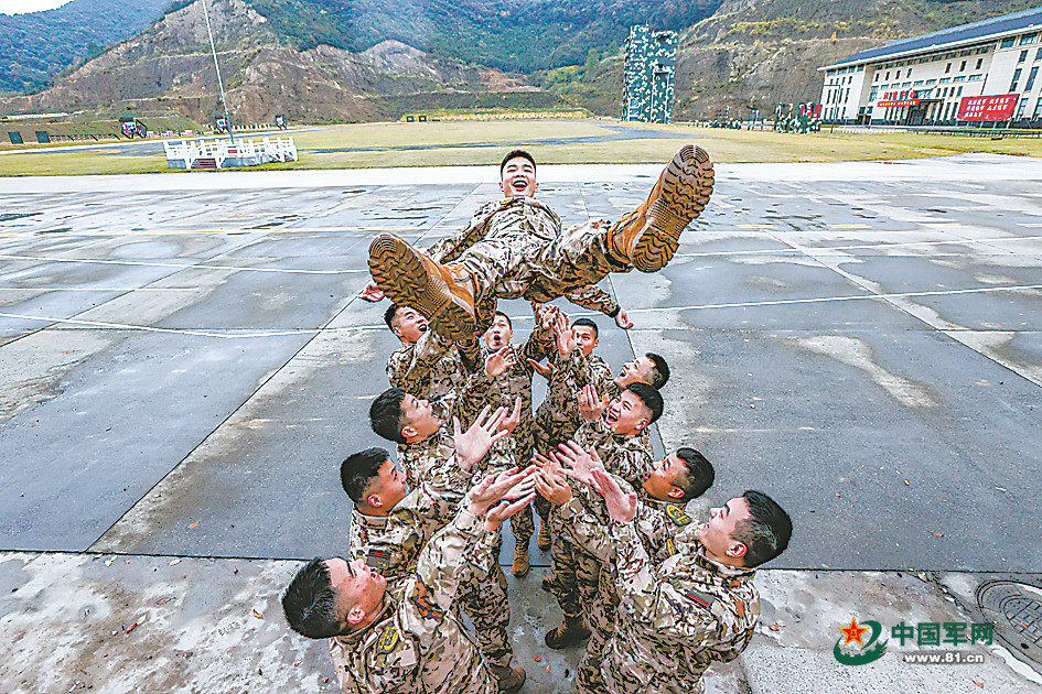 供应保障中队官兵庆祝比赛胜利。盛相良摄