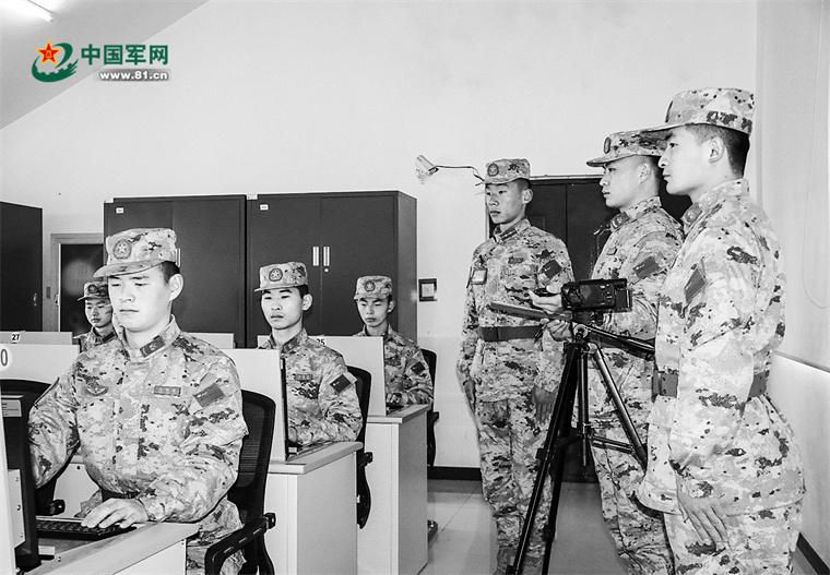 近日,第82集团军某旅依法依规开展年终考核,检验官兵技能本领。图为监考人员在指挥信息系统考核时严格执纪。杨开明摄