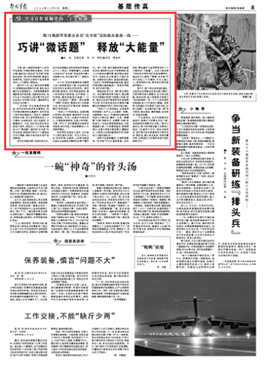 “‘兵专家’们出身基层来自营连,他们的成长进步官兵看得见,他们的理论解读官兵愿意听,他们的奋斗经历官兵能效仿。”采访中,该旅领导告诉记者,学习宣传贯彻党的二十大精神,主体是官兵,活力在基层,关键要践行。为此,他们突出抓好身边典型引领学,将党的二十大报告分解成56个“微话题”,提供给“兵专家”们灵活选择,鼓励他们结合个人感悟进行学习理解,择机为身边战友进行宣讲解读。