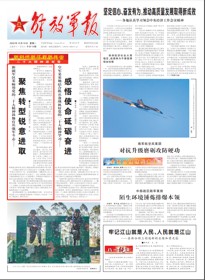 “报告提出,如期实现建军一百年奋斗目标,加快把人民军队建成世界一流军队。转型路上,我们必须争当新时代铁骑尖兵。”雷达技师、一级上士钱国进的话道出了大家的心声。他说,大会结束后,党的二十大代表、师宣传科干事马和帕丽便视频连线高原驻训官兵,分享学习党的二十大报告的心得体会。