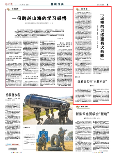 “相较于以前厚厚的作战计划方案,如今仅明确作战任务的‘敌情’通报,更能磨炼部队胜战本领。”蒋培方告诉记者,过去组织演练,演练计划通常涵盖各种特情处置方案,规定行军路线,指定作战地域等,导致演练只能跟着方案走,看似战斗打得精彩、评定公平公正,实则并不完全符合实战要求,也在一定程度上束缚了官兵打仗的思维和手脚。