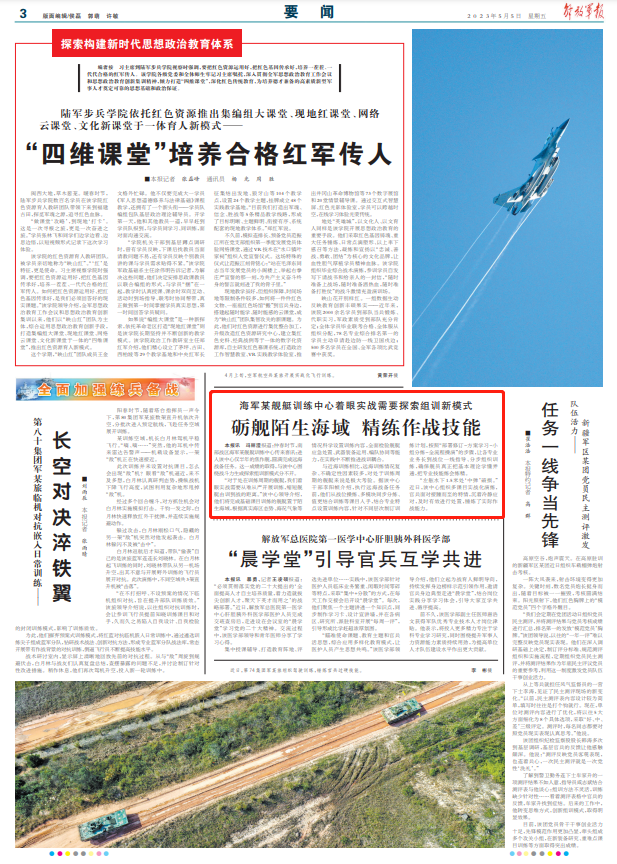 解放军报讯 冯丽滢报道:仲春时节,南部战区海军某舰艇训练中心传来喜讯:进入该中心仅半年的焦作舰,圆满完成远海战备任务。这一成绩的取得,与该中心围绕战斗力生成探索组训新模式分不开。