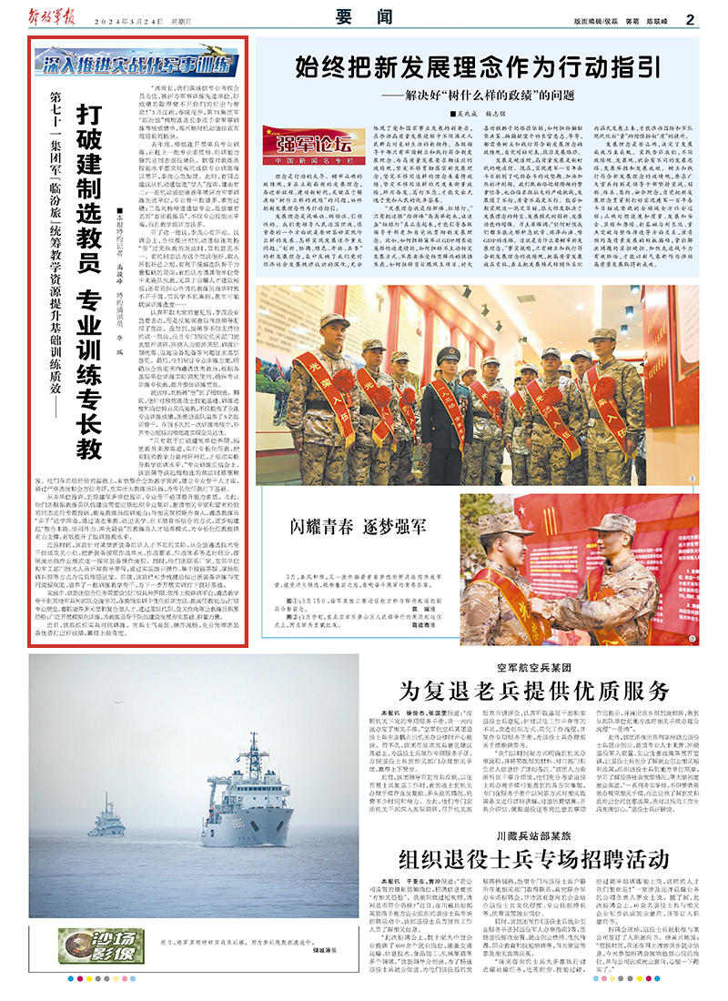从本单位施训,到跨建制多单位施训,专业骨干亟须提升能力素质。为此,他们还根据教练员队伍建设需要定期组织专业集训,邀请相关专家和富有经验的同志进行专题授课,提高教练员组训能力;与相关院校联合育人,遴选教练员“苗子”送学深造,通过请进来教、送出去学、自主培育相结合的方式,逐步构建起“整合本级、借用外力、淬火锻造”的教练员人才培养模式,为专长化任教提供有力支撑,有效提升了组训施教水平。