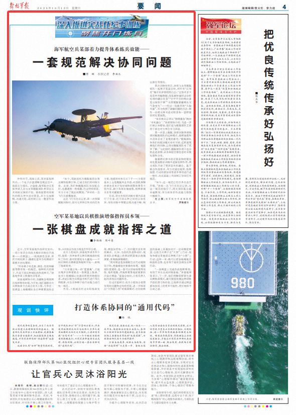 “如今,驾驶战机为舰艇提供态势支撑和指挥引导,已成为我们的训练日常。此前,我们和舰艇部队协同配合时,也遭遇到一些难题,经过持续探索,双方才有了现在的默契。”参训的一名飞行员感慨地说。