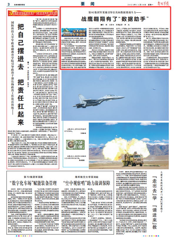 “经验绝非万能钥匙,缺乏数据思维注定要栽跟头。”该旅作训科一名干部告诉记者,对抗中,对手“用数据说话”的练兵思路,引起旅队党委高度重视。该旅党委一班人讨论形成共识:要想夯实能力基础,必须建立自己的作战数据库。随后,该旅机关指导各分队成立攻关小组,全面展开训练数据采集工作,协调统筹飞行、机务、航管等专业力量,合力推进包括《特情处置手册》在内的作战数据库建设。他们还通过邀请行业专家来队分享前沿理论、选送优秀人才学习数据分析处理知识等方式,夯实官兵向数据要战斗力的能力基础。不仅如此,该旅充分发挥任务练兵作用,依托野外驻训、大项任务等时机锤炼官兵数据运用能力,培养出一批“会研究数据、懂运用数据”的飞行人才。