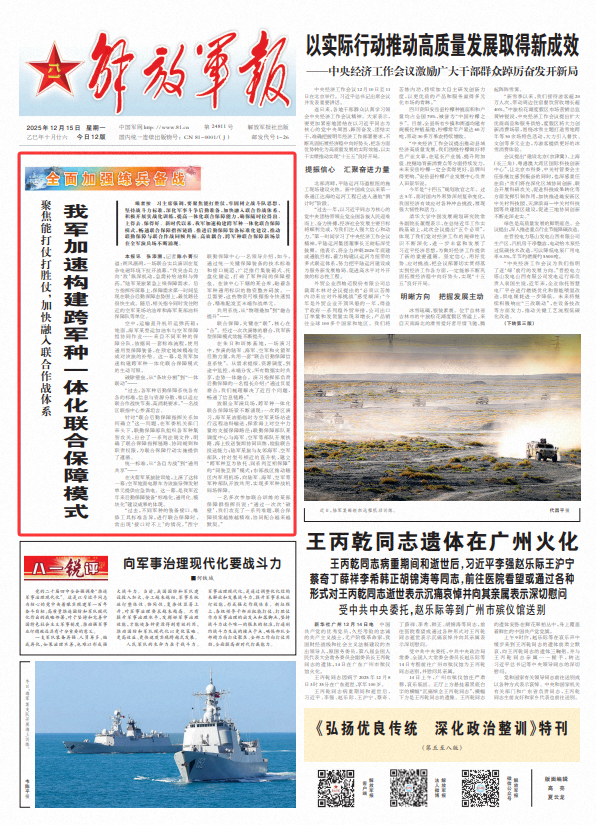 来源:中国军网-解放军报 作者:张添溯 陈小菁 责任编辑:郭妍菲 发布:2025-12-15 07:55:28