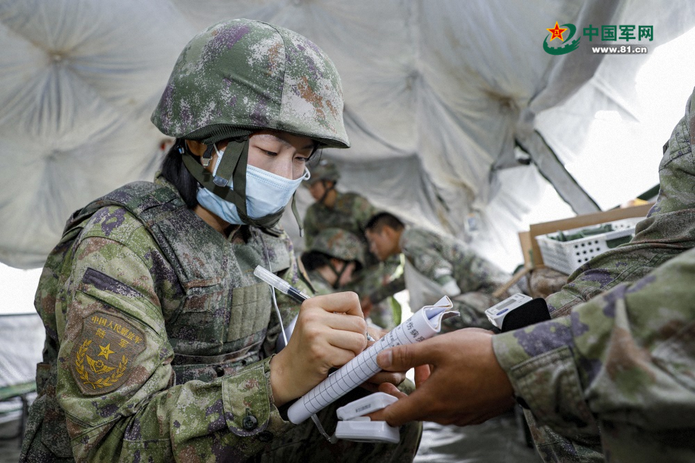 医疗留治组成员快速处理、记录“伤员伤情”。唐田 摄