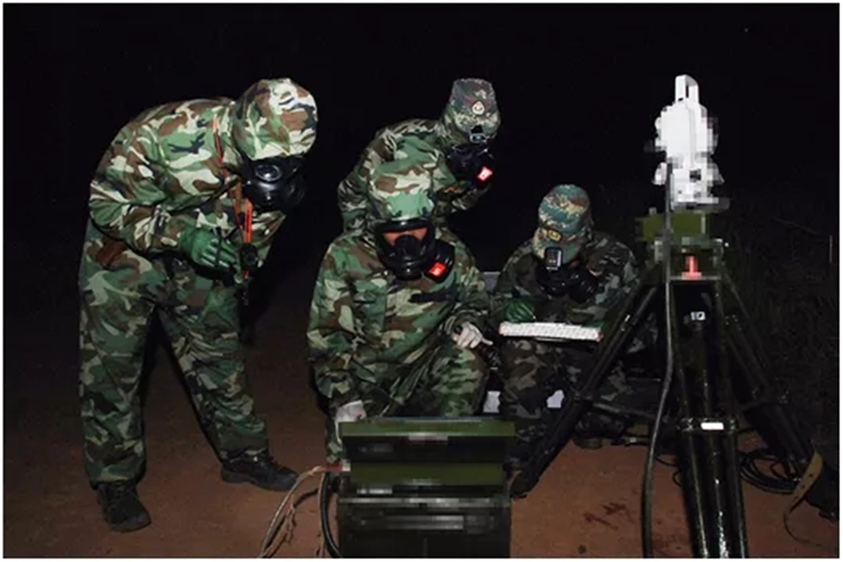 官兵迅疾应对,“战斗”愈激烈,硝烟偏四起。紧张操作之际,一阵烟雾突然飘来,“毒气”侵袭整个作战地域,号手迅即进入全防护战斗状态。