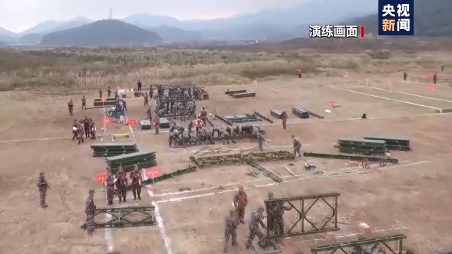 比武开始,前方桥梁遭敌损毁,现场指挥员果断决策,架设战备钢桥保障后续分队快速通过。经过15分钟紧张作业,7条桥梁全部抢通,人武部指挥车带领任务分队迅速通过。