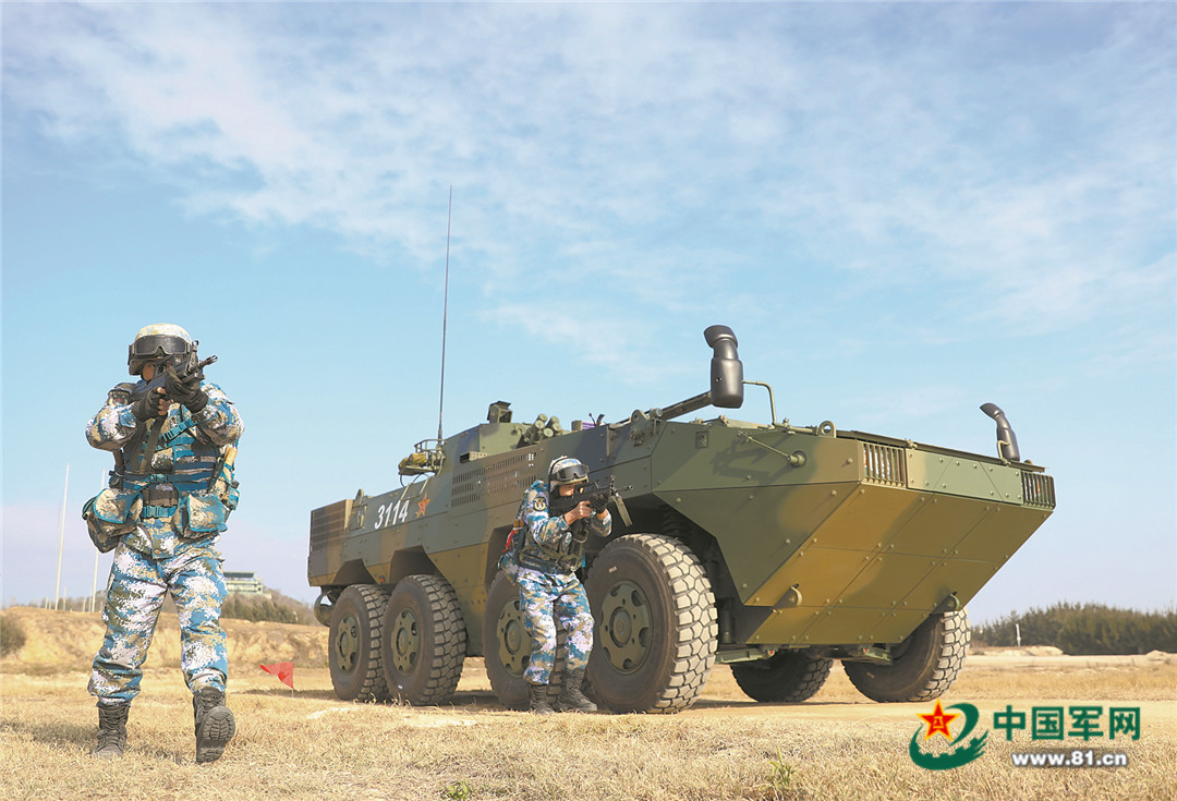1月6日,海军陆战队某旅开展实战化演练。图为步兵与步战车协同进攻。杨 航摄
