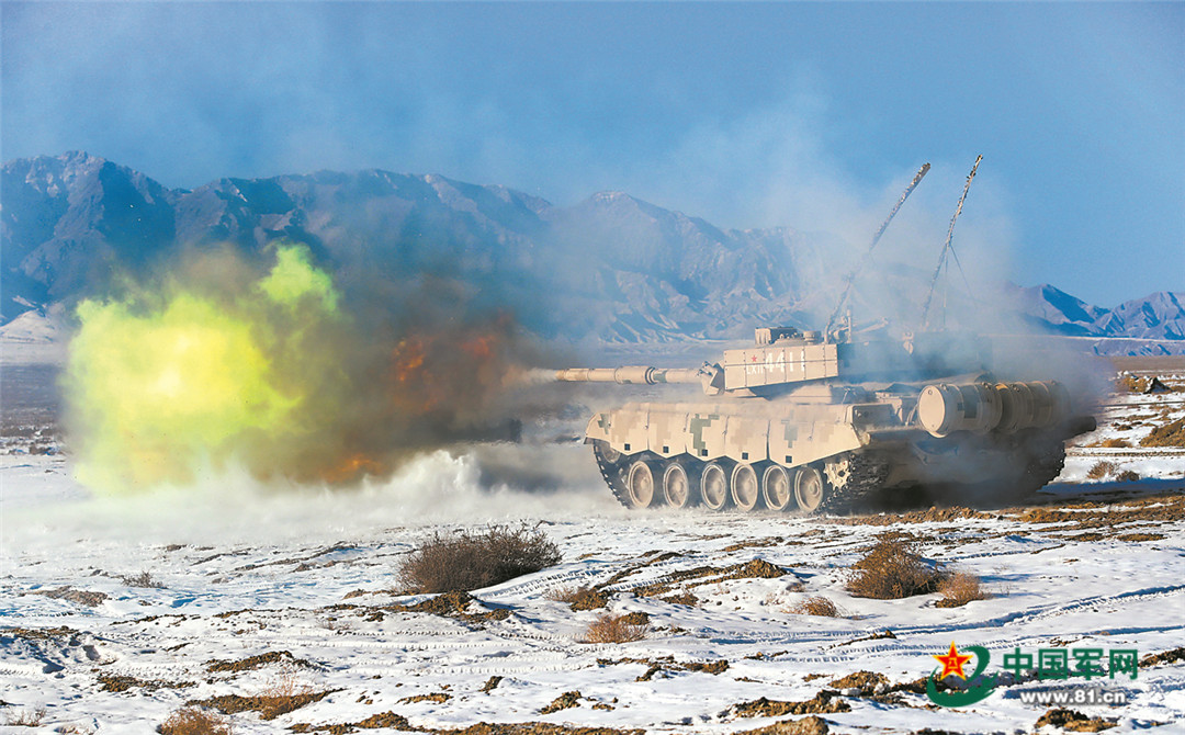1月5日,在第76集团军某合成旅组织的新年度首场实战化训练中,坦克分队对“敌”目标实施火力打击。李忠元摄