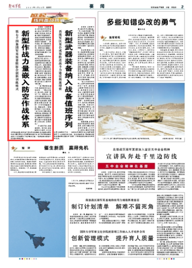 中央军委2021年开训动员令明确要求,加强新装备新力量新领域训练和融入作战体系训练。随着世界新军事革命的加速发展,新装备新力量新领域日益成为谋取军事竞争优势的战略制高点。谁能领先一步,谁就能赢得制胜先机。