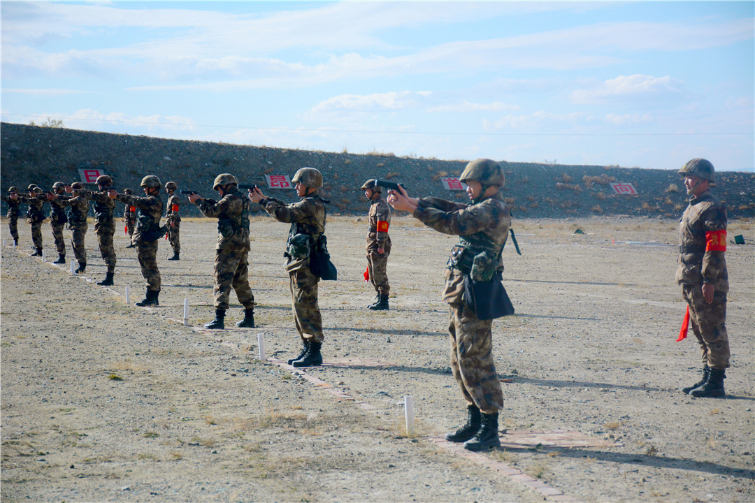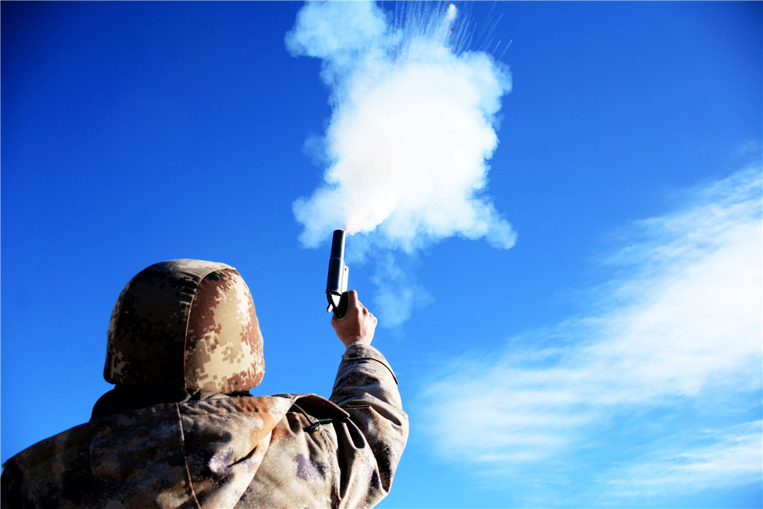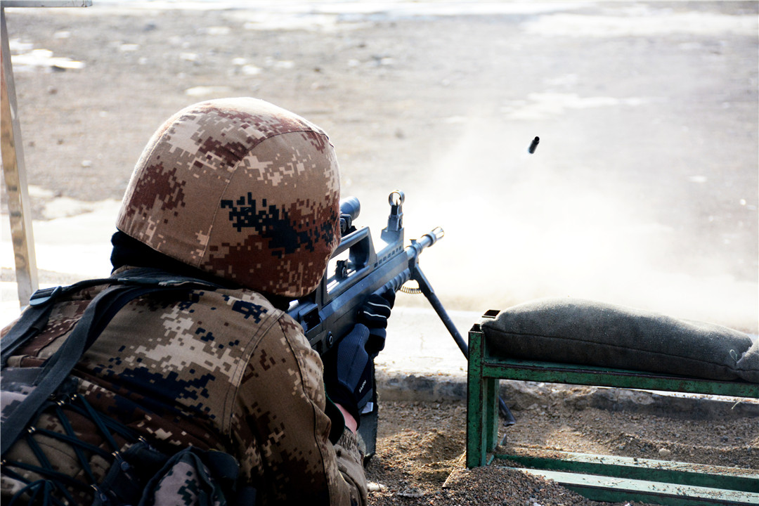 随着信号员发出射击开始信号后,两道红光划过天际。“向射击地线前进!”“卧姿装子弹!”“开始射击!”指挥员一声令下,射手迅速卧倒、据枪、屏息、瞄准、完成击发。密集的枪响,打破了天山脚下的宁静,浓烈的硝烟味随即弥漫开来……