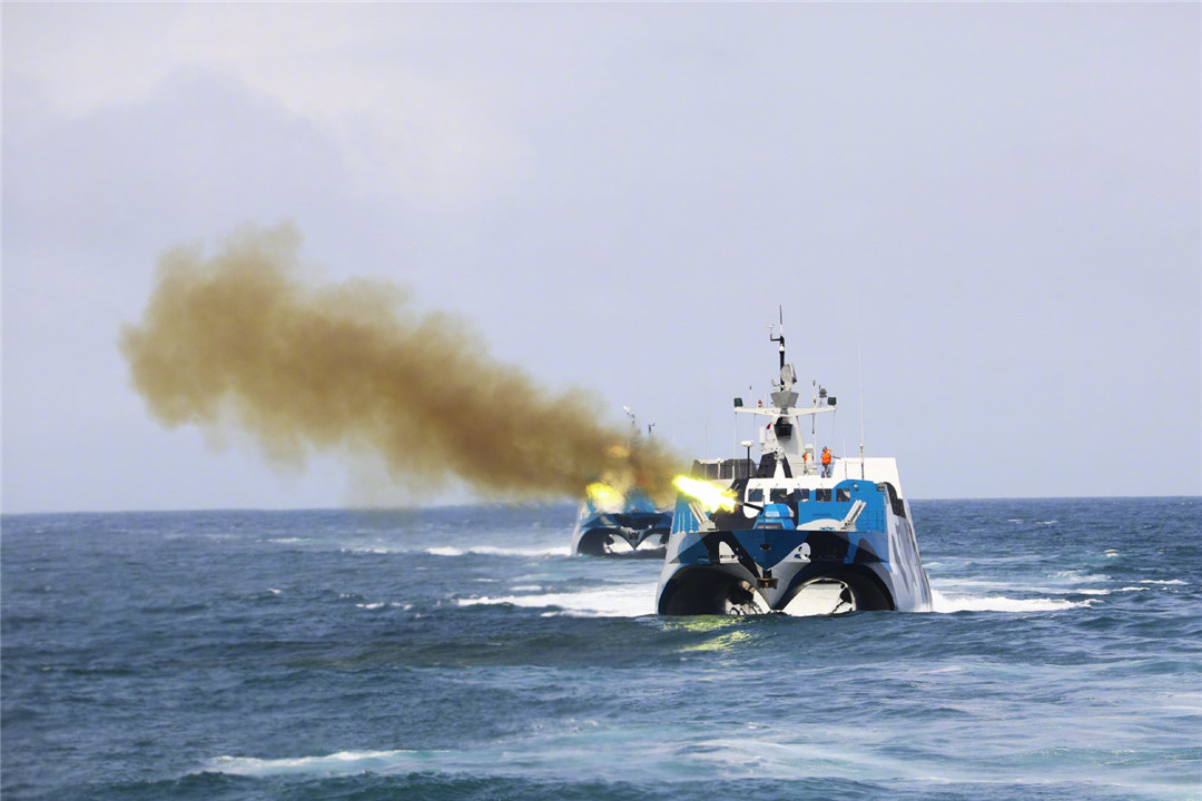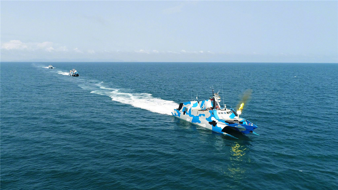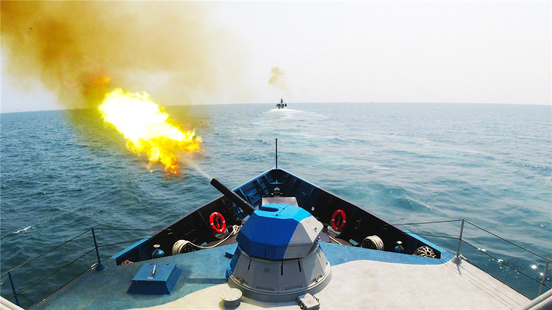 近日,南部战区海军某导弹快艇大队舰艇编队在南海某海域开展实战化训练,编队连续完成舰炮应用射击、综合攻防、防空反导等多个实战化科目,有效检验了官兵在复杂条件下实际使用武器能力和应急处置水平。(许富强 李长春 延年 王凡宇 余亮酉)