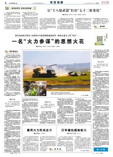 “火器种类越是多样、打击手段越是丰富,对能力素质的要求就越高。” 新战位带来的视角转变,让韩路通时常感慨:手握“十八般武器”,更要有“七十二般变化”的本事。