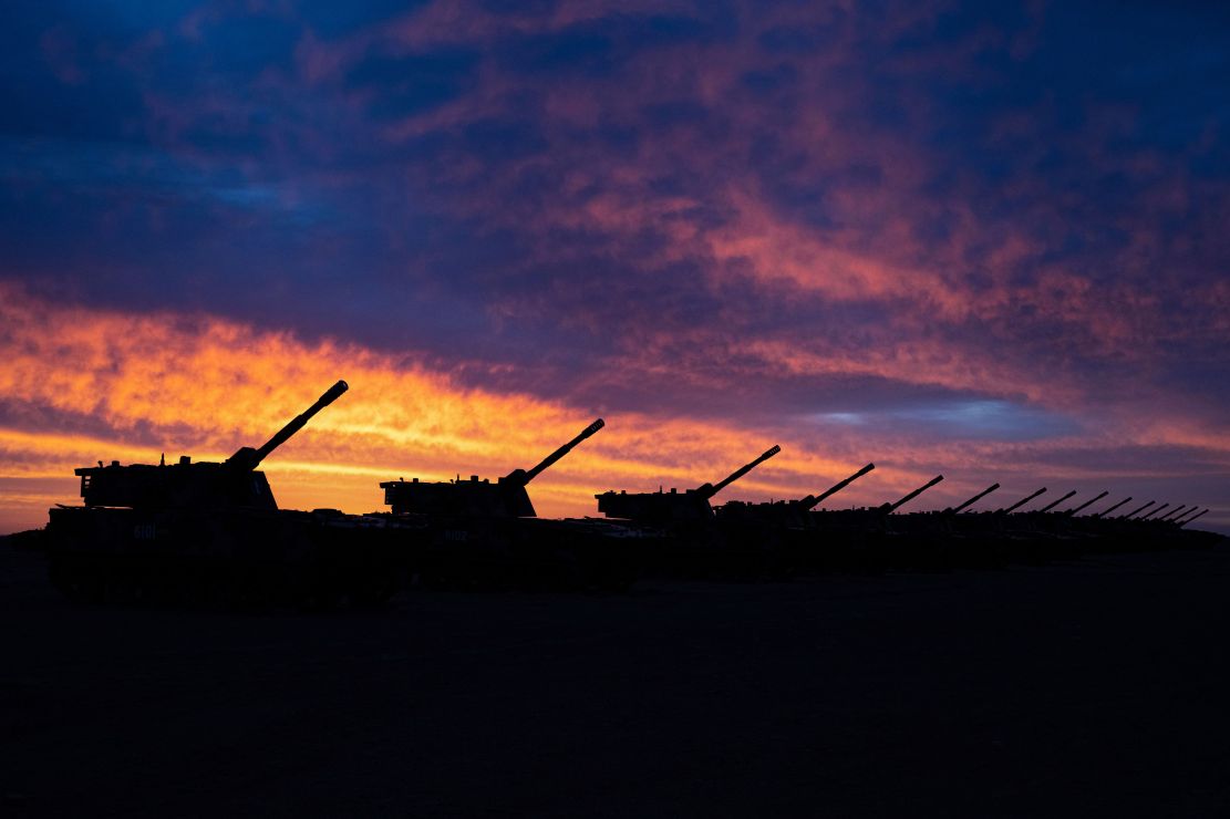 夕阳西下,战炮列阵