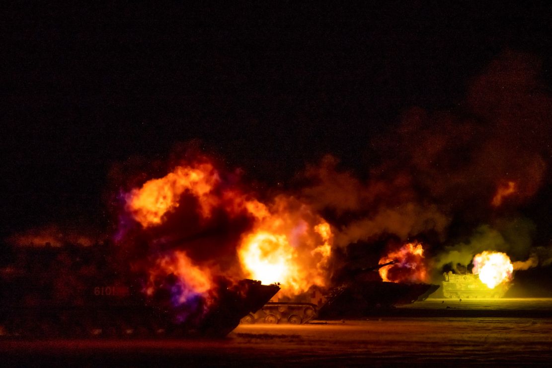 火箭炮夜间进行炮火覆盖