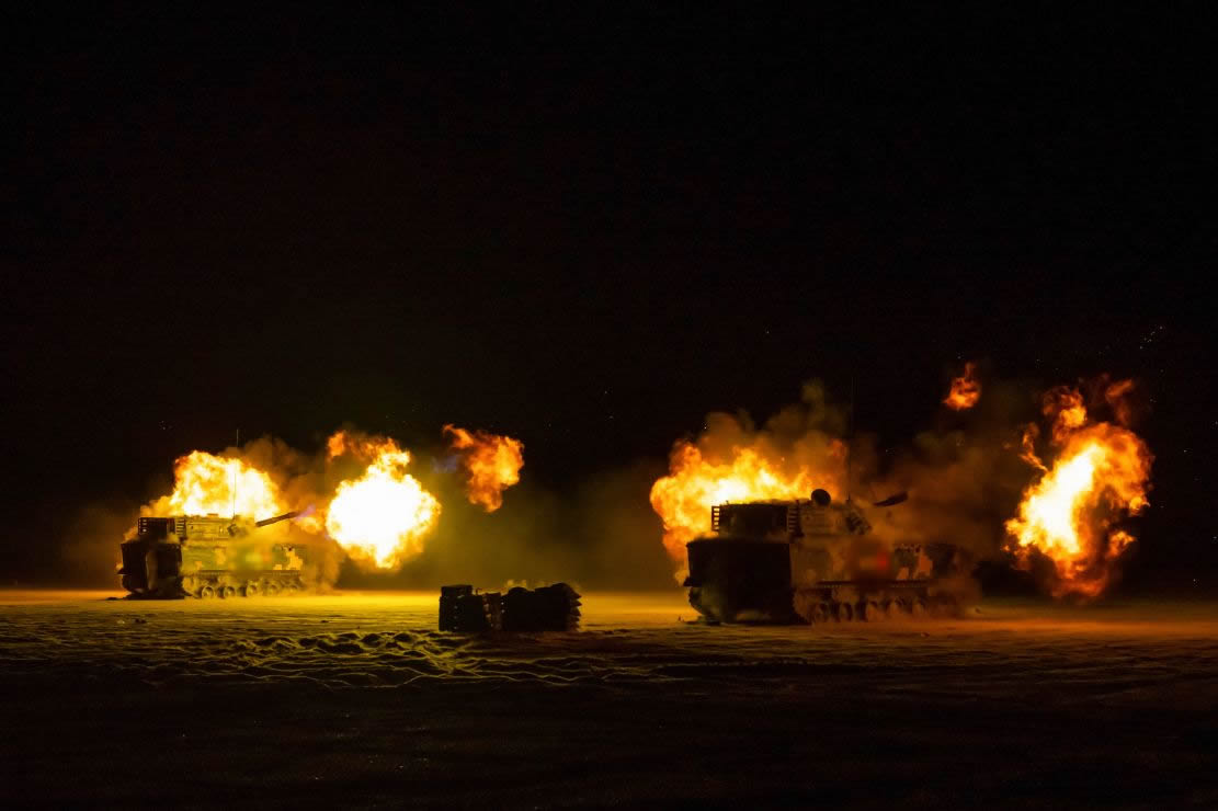 榴炮分队进行夜间炮火覆盖