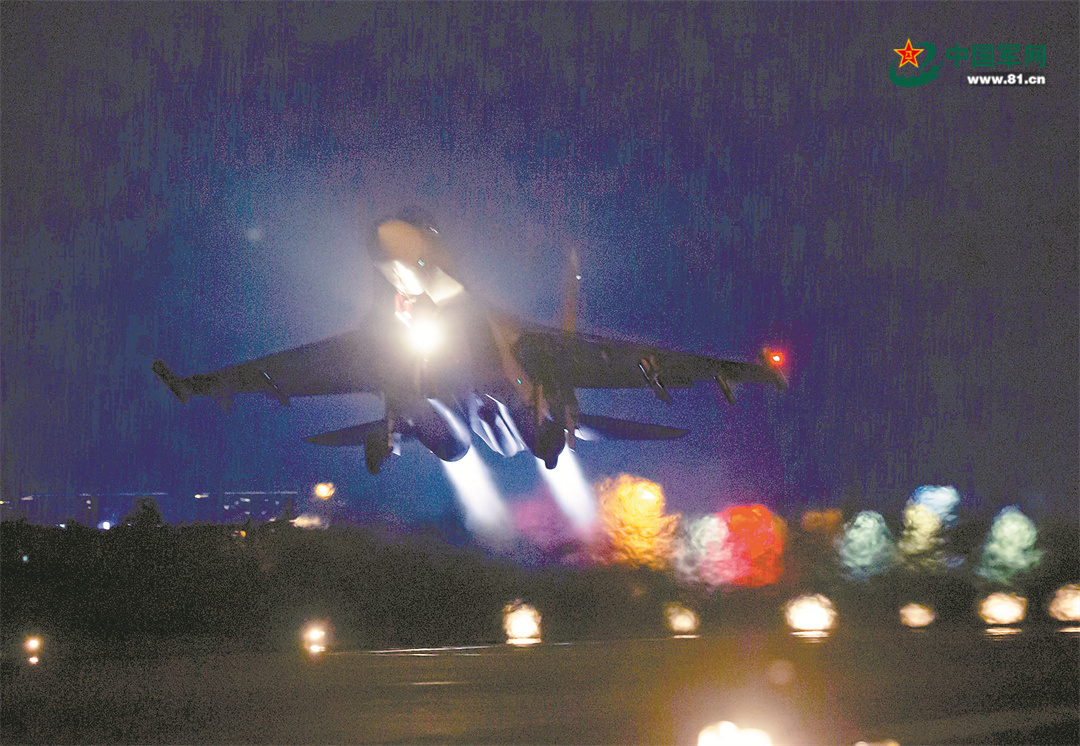 日前,空军某部组织夜间飞行训练。黄国泰 摄