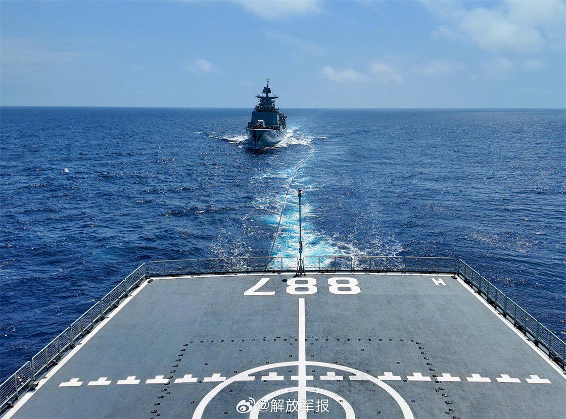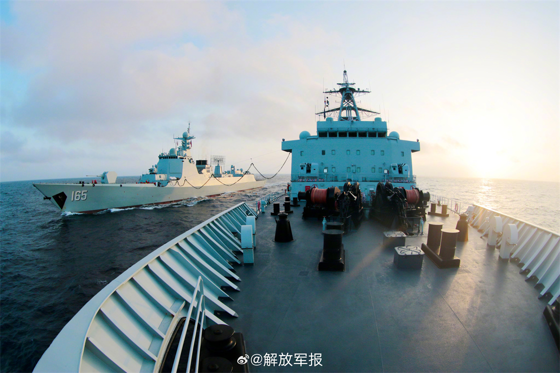 近日,南部战区海军某勤务船大队组织多型舰船踏浪出击,围绕编队综合防御、海上多向补给、舰炮射击等课目展开实战化训练,进一步提升部队作战支援保障能力。