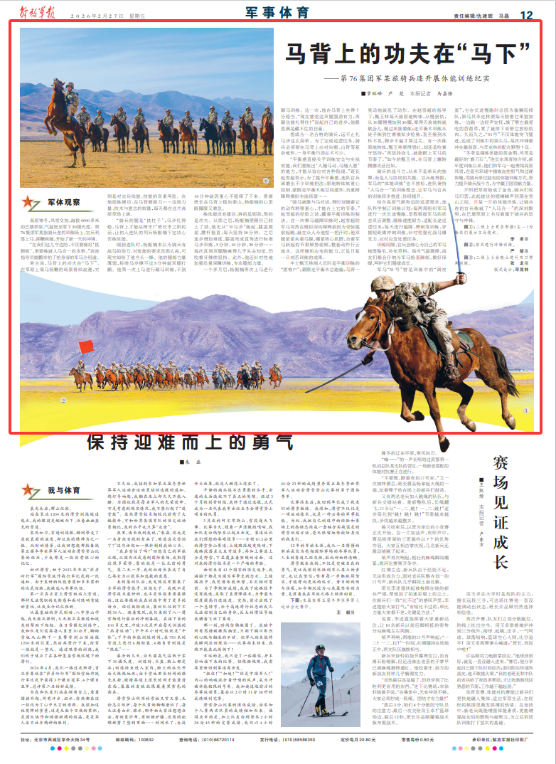 常言说,马背上的功夫在“马下”。在草原上策马扬鞭的场景看似浪漫,实则是对官兵体能、技能的双重考验。在地面练硬功、在马背磨耐力……这场力量、技术与意志的较量,每天都在这片高原草场上演。