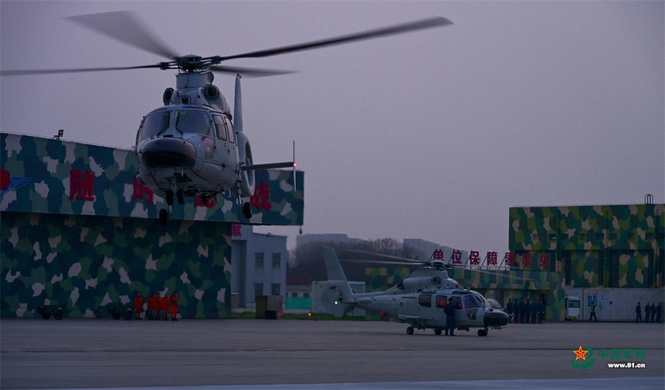夜色如墨,数架直升机依次升空,呼啸着向目标海域突进。抵达目标空域后,编队迅速转入搜索识别课目。飞行员利用机载雷达和光电设备,在复杂海况下快速锁定目标,完成识别确认后迅即脱离,动作精准连贯。训练过程中,编队还完成了横队、纵队等多种队形变换,飞行员紧盯仪表数据,精准操控战机,始终保持编队协同一致。
