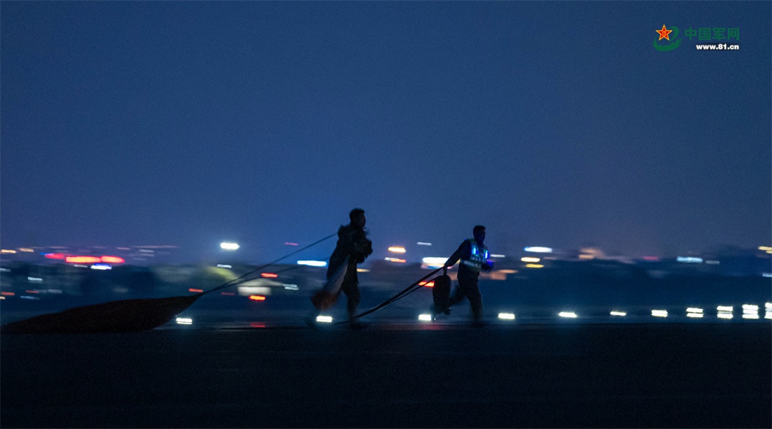 夜幕下,随着最后一架战鹰返场落地,当日飞行顺利结束,参训飞行员态势感知、协同作战、遂行任务能力得到有效锤炼。