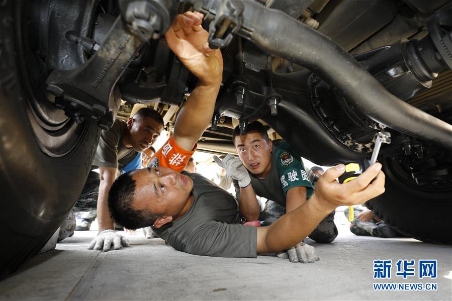 联勤保障部队某团修理技师张俊凯用特殊的“听诊器”——螺丝刀为车辆“诊治”(2019年5月22日摄)。新华社发(曾曾 摄)