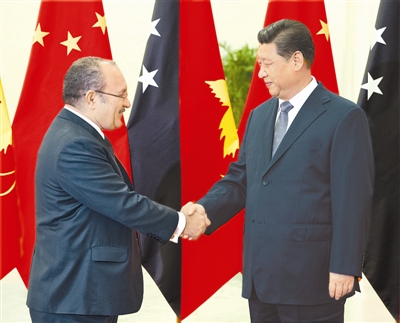 习近平指出,巴新是中国在南太平洋地区的真诚朋友和重要合作伙伴。我们愿同巴新方一道,拓展经贸、能源资源、基础设施建设、农林渔、人文等领域交流合作,推动两国关系取得更大发展。巴新是太平洋岛国地区区域合作的重要推动者、引领者。再过几天,我将在斐济同太平洋建交岛国领导人会晤,我期待着同包括巴新在内的各建交岛国共商友好合作大计。