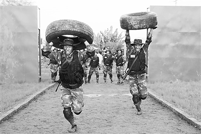 第二炮兵某旅采取形式多样的训练方法,强化官兵打仗意识,砥砺官兵意志品质。图为7月15日,该旅作战分队开展举轮胎竞跑比赛。廖丹阳摄
