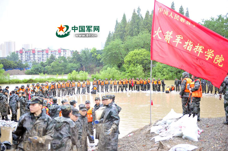 湖北武汉:火箭军指挥学院紧急驰援抗洪抢险一线