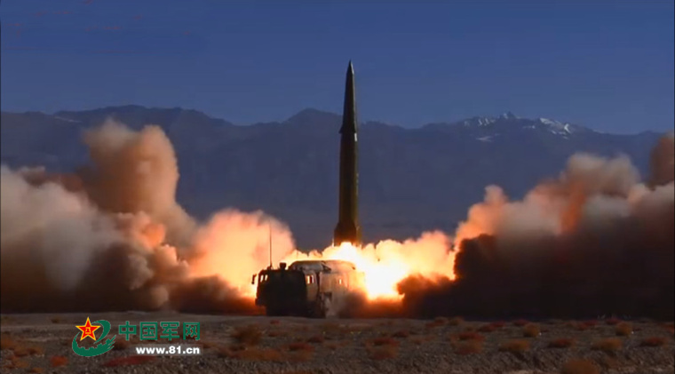 清脆的哨音划破冬夜的宁静。一位身材魁梧的上士,双手不停地做出各种手势,嘴里吹出长短不一的哨音。他正在指挥几名号手操作吊车臂或升或降、或转或停,将一枚导弹稳稳地转载到发射车上。几分钟后,战车驰骋驶入夜幕,一场导弹发射演练即将打响。