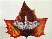 先来看看火箭军胸标画在树叶上的样子,有没有“美”到你?
