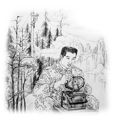 一年夏天,驻地突发山洪,河水冲断了对岸约5公里长的电缆和通往对岸的小桥。大家在岸边急得团团转。“你们等着,我游过去。”黄渊飞说完,就背着工具跳进河里,一个人游到对岸修好了电缆。