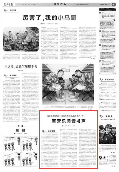 四级军士长蒋建虎说出了大多数战友的心声:“比起物质的满足,读书给予我们的是更高层次的精神上的愉悦享受。这样的活动,简单易行效果好,就应该多多组织才是!”