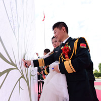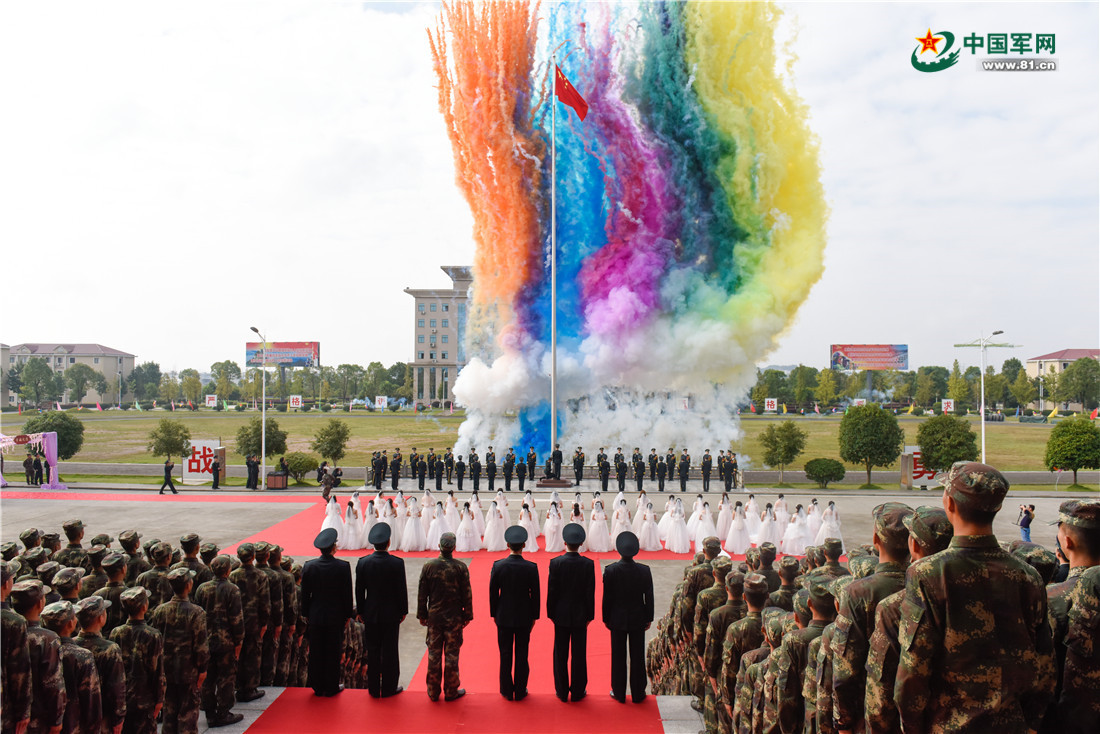 “一心装满国,一手撑起家,家是最小国,国是千万家……”红地毯、绿军装、白婚纱,一曲《国家》唱出了婚纱邂逅军装的神圣与浪漫,诠释了忠诚与爱情的完美交融。结连理恰逢迎盛会,10月21日,在这个代表“一生爱你”的日子里,火箭军某旅为39对新人举行“共庆十九大•携手筑爱巢”集体婚礼。