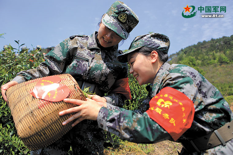 浙江省长兴县退役女兵爱心服务队帮助茶农采摘春茶