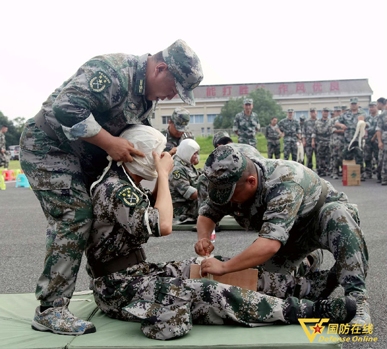 单兵战术基础课目考核现场,随着考官一声令下,参赛民兵迅速卧倒,收腿、伸臂、出枪、穿越铁丝网,不断交替,腾起阵阵尘土……战术动作一气呵成。与此同时,个人防护、卫生与救护课目比武也在同步进行,参赛民兵身穿迷彩服,精神抖擞,挥汗如雨。