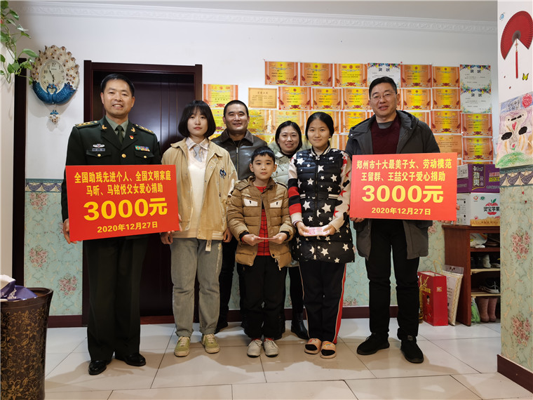 2020年12月27日,马昕和郑州市劳动模范王留群一起来到徐文婷家,将生活用品和6000元现金交到文婷手中。