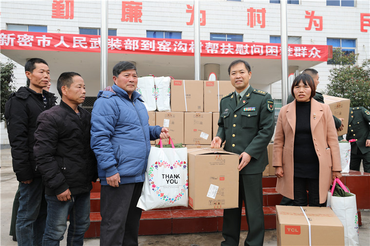 2019年12月17日,新密市人武部政委马昕为窑沟村结对帮扶对象张国敏送上棉大衣、电暖气等过冬过冬物资。
