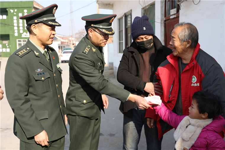 2020年12月27日,新密市人武部政委马昕、副部长李广喜看望慰问大隗镇窑沟村困难群众张玉辰,送上生活用品。