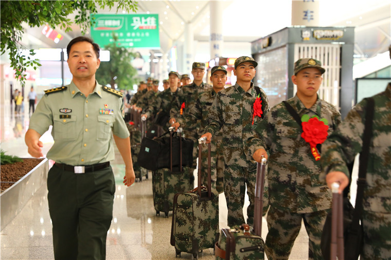 2018年9月10日,马昕护送新兵到郑州东站集结,勉励他们到部队后立功受奖为家乡争光添彩。
