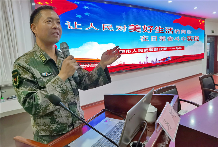 2020年6月6日,新密市委常委、市人民武装部政委马昕为参加轮训备勤的民兵分队授课,激发大家训练热情。