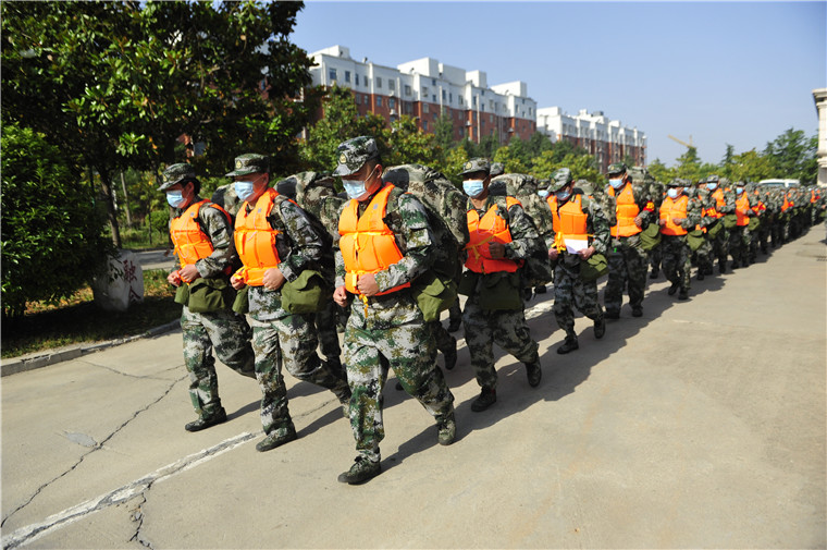 2020年5月21日,新密市民兵应急分队快速集结,执行防汛抢险任务。