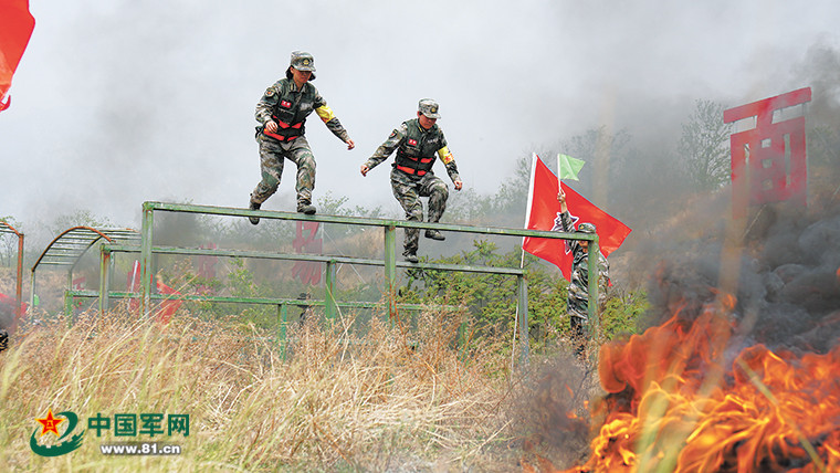 刘胡兰英雄民兵班成员进行越障训练。张 武摄