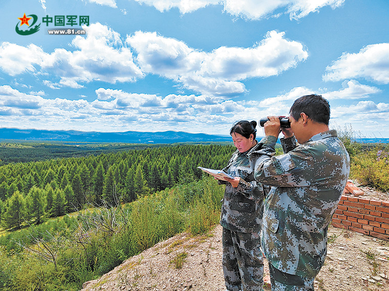 民兵护林员杜军、温国芹瞭望塞罕坝机械林场。韩 冬摄