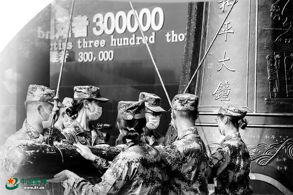 参训学生共同撞响和平大钟。韩家琛摄