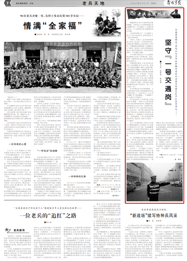 多年站在岗台,让牟清元患上风湿病和“老寒腿”。2002年,队里考虑到牟清元的年龄和身体状况,调他到大队违章处理办公室当主任。这份晒不到、吹不着的“好工作”,却让牟清元如坐针毡。没过多久,“每天看不到红绿灯就着急”的牟清元主动找到大队领导,态度很坚决,“一线缺警力,我请求回岗台,一是熟悉情况,二是可以起到传帮带的作用。”就这样,牟清元又回到“一号交通岗”。