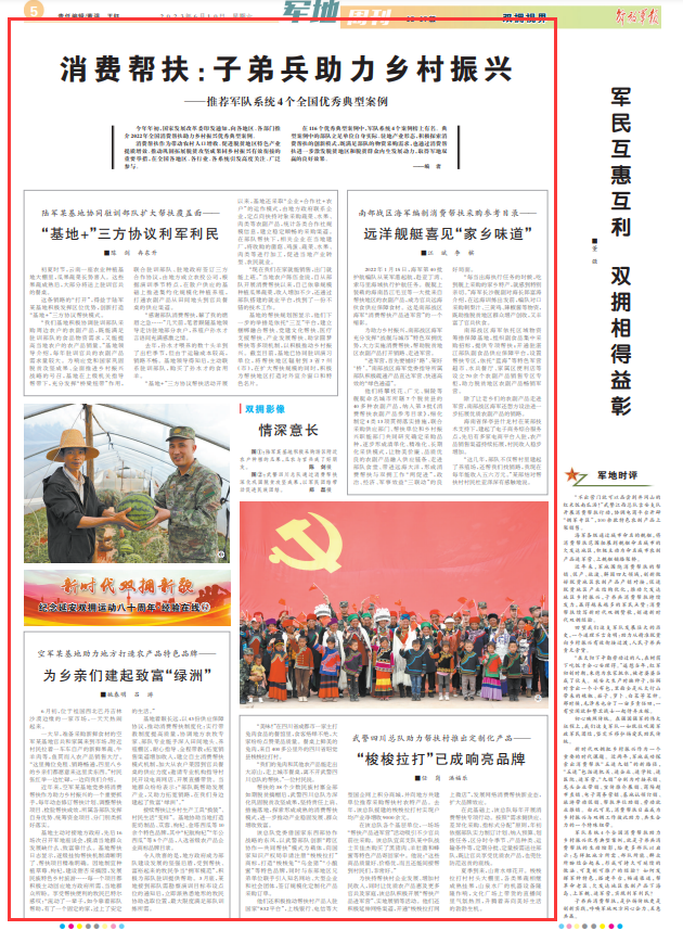 为助力乡村振兴,南部战区海军充分发挥“战舰与城市”特色双拥优势,大力实施消费帮扶,帮助脱贫地区农副产品打开销路、走进军营。