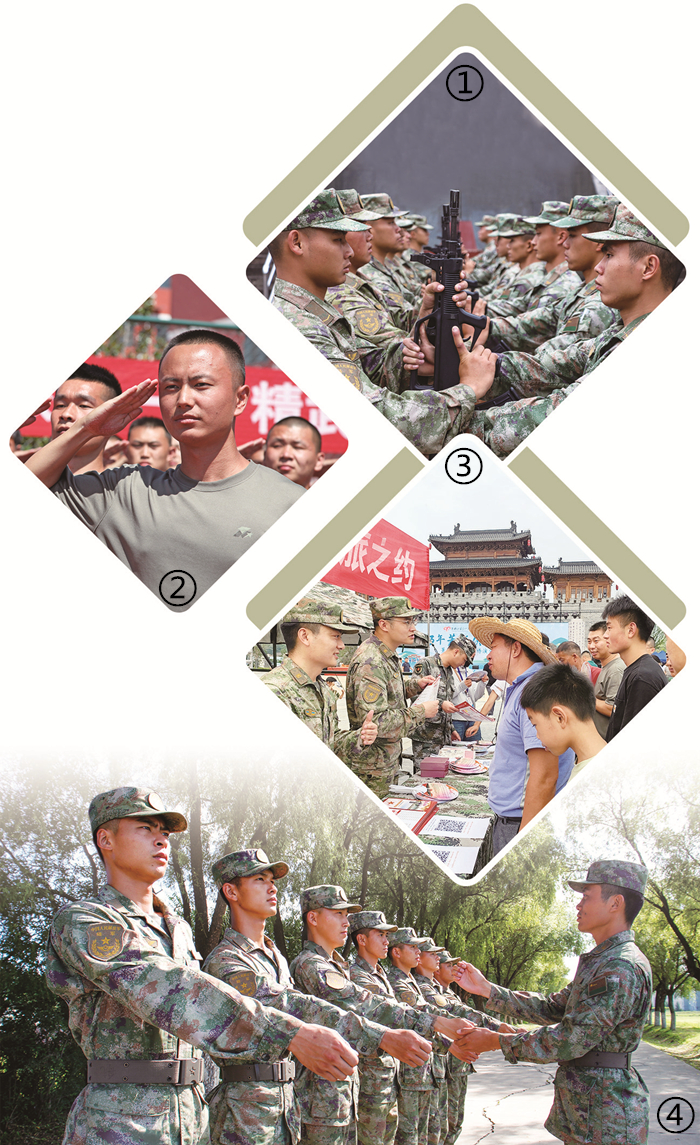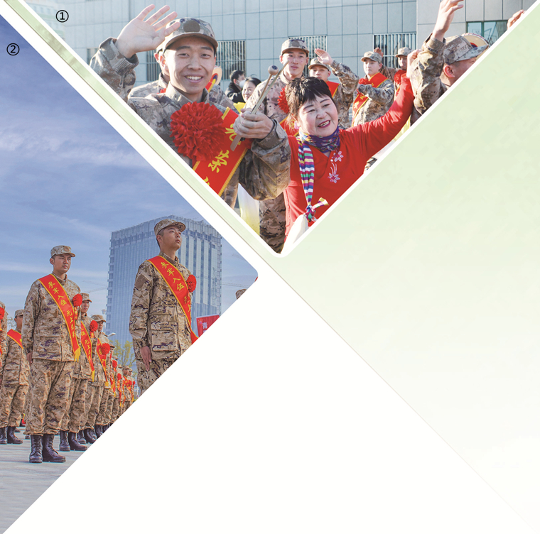 图①:吉林省延吉市欢送新兵入伍 。 侯俊晓 摄 图②:江苏省宿迁市举行送兵仪式 。徐江海 摄